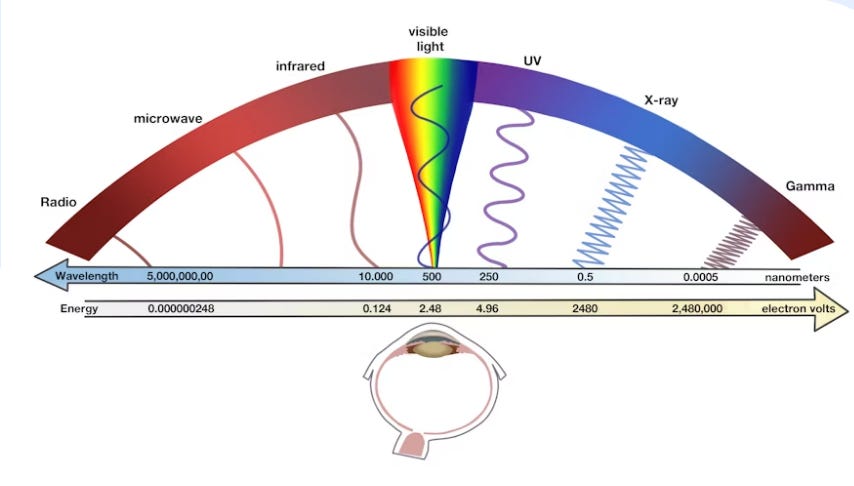 Through that tiny window comes everything the human eye calls “light.” Yet the universe runs on energies far beyond that sliver.