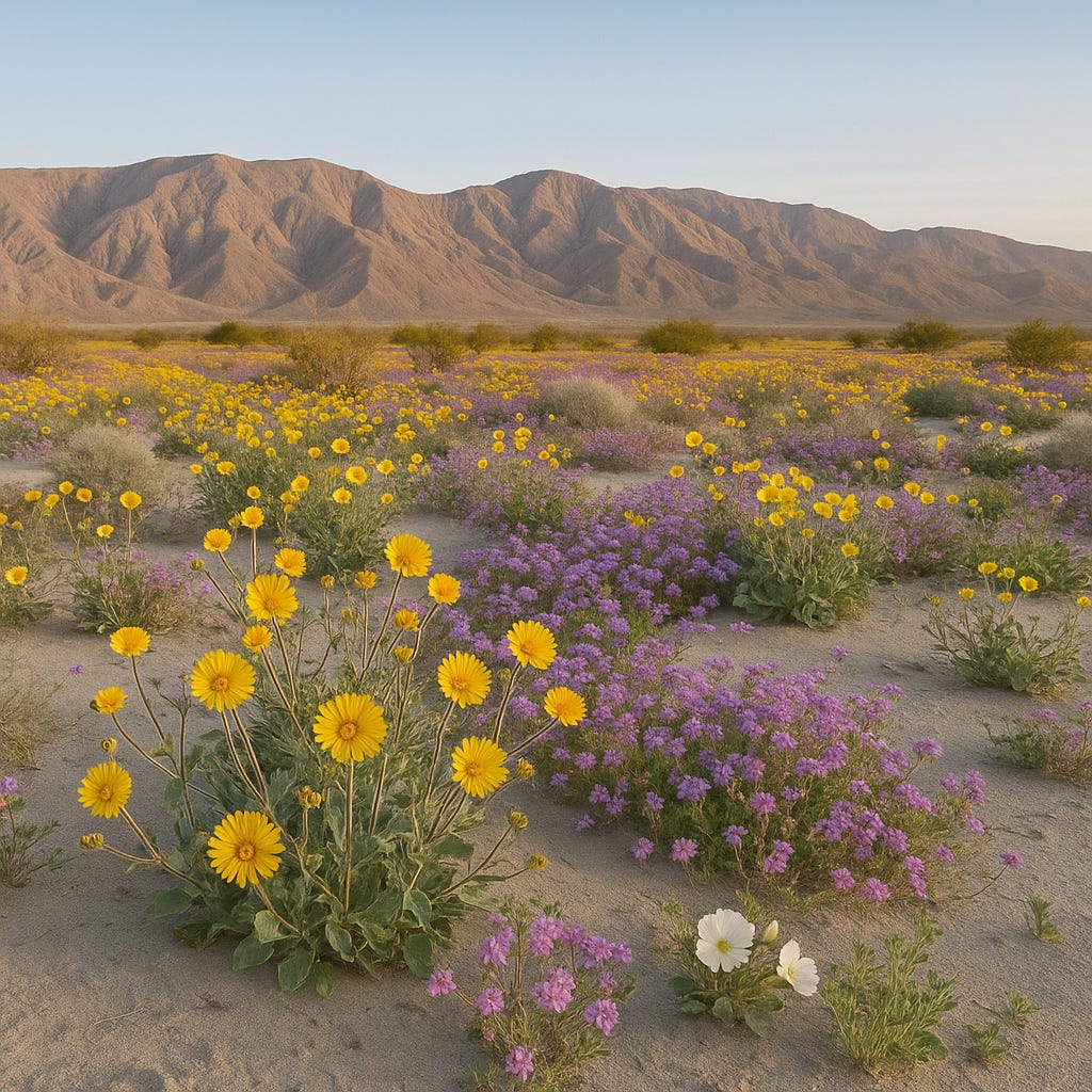 After the rains in Anza-Borrego, I watched the desert bloom—small yellow flowers breaking through sand that had seemed barren only days before. Up close, there was more life than I expected: caterpillars moving along fresh stems, ladybugs clinging to petals, quiet signs that the land was not only flowering but awakening. Seeing it with my own eyes, Isaiah’s words felt less like metaphor and more like recognition: joy as creation’s response to restoration quietly received.
