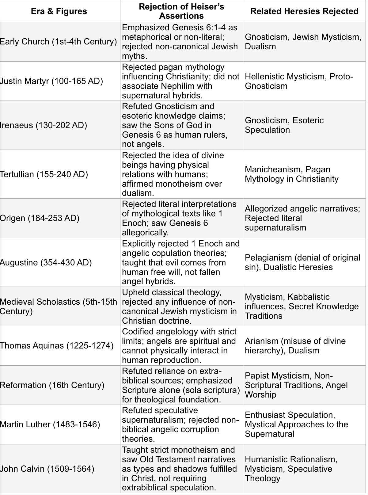 Historical Rejection of Heiser’s Assertions: Church Fathers and Theological Opposition to Angelic-Human Hybrids