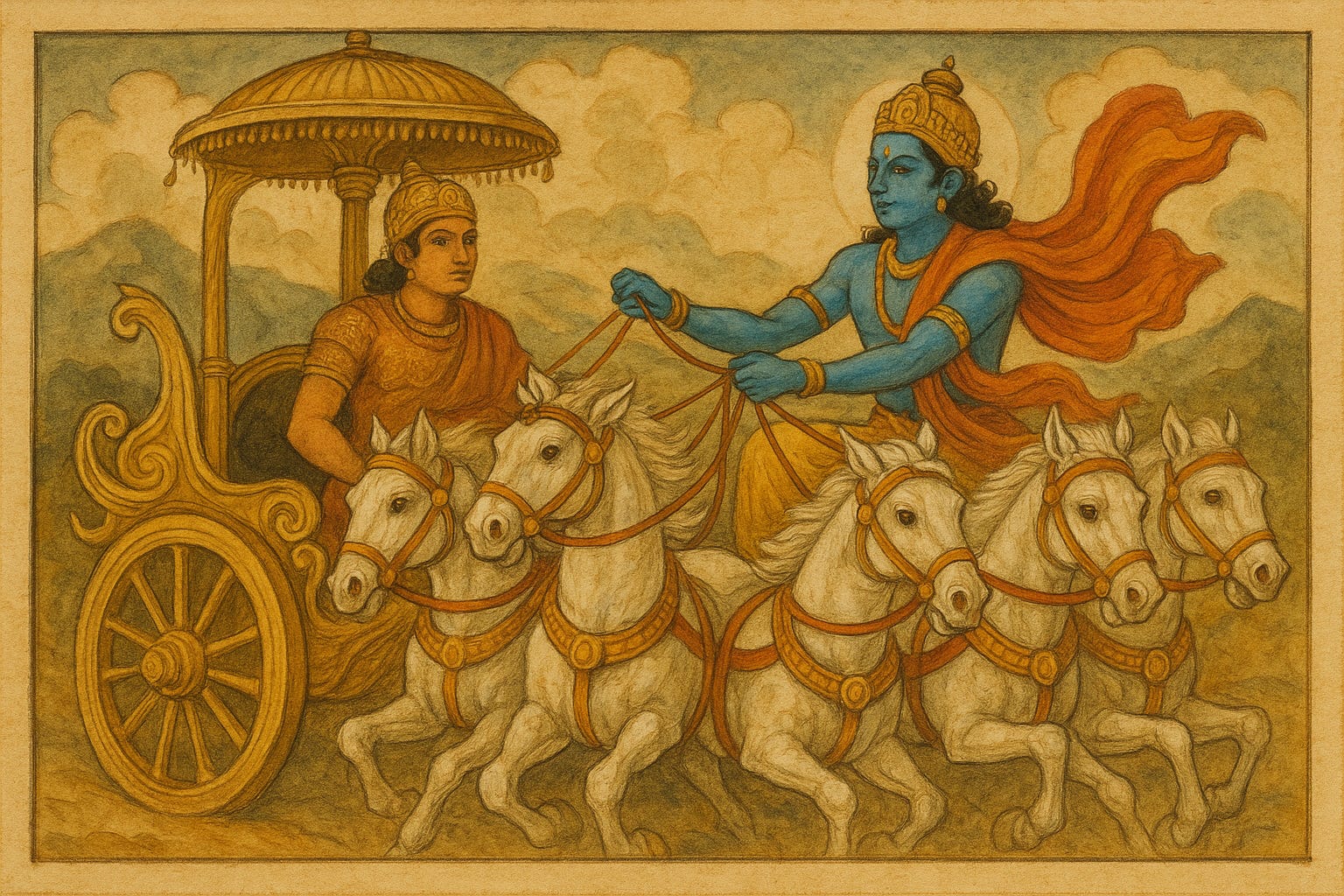 In the Bhagavad Gita, the chariot reappears this time in the battlefield of the soul.