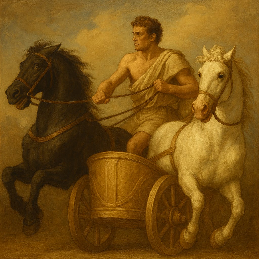 For Plato, this introspection revealed the soul’s (the essence of the living being’s) structure. In his chariot allegory (Phaedrus), the self is a rider steering two horses: