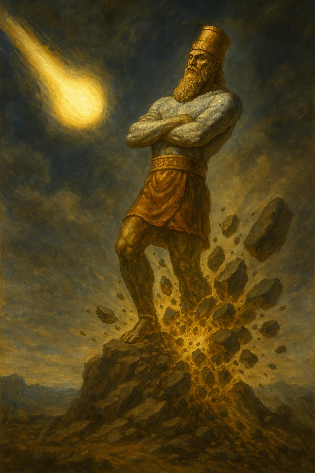 And then comes the stone. Not cut by human hands. Not shaped by kings or councils. It strikes the statue, not in the head, but at the fragile feet—where iron and clay pretend to hold together. The whole thing collapses. And the stone becomes a mountain: